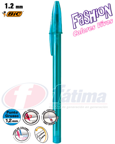 Boligrafo Ball Pen Bic Fashion P. Grueso 1.2 Mm, Turqueza X 12