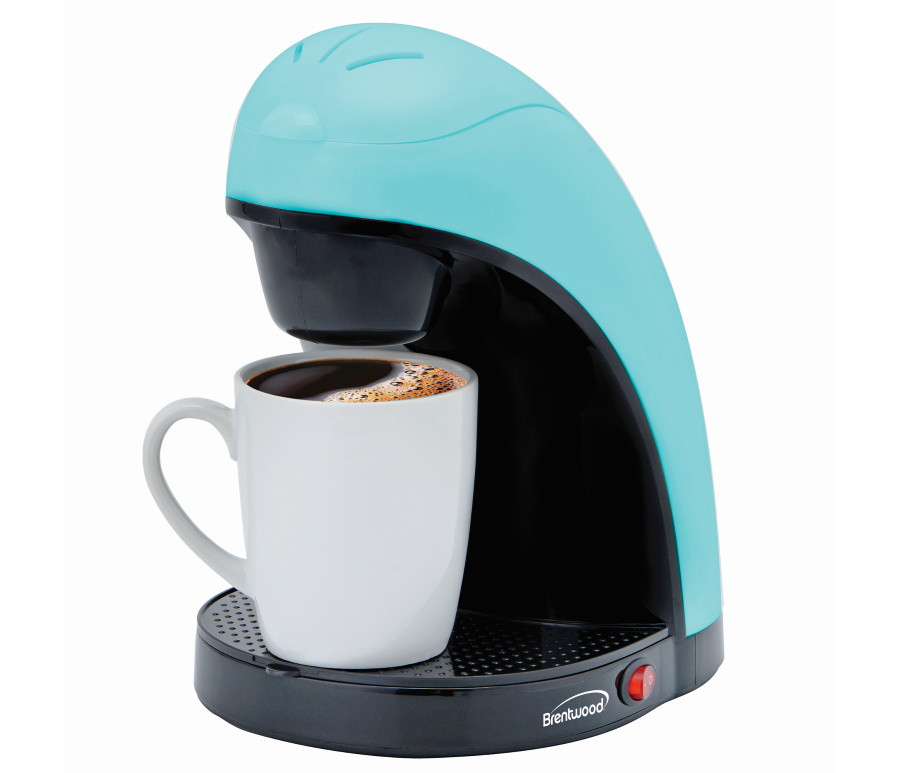 Cafetera de servicio individual con taza para preparar la taza de cafe perfecta con hasta 4 cucharadas de su cafe molido favorito. Simplemente coloque sus suelos, agregue agua y presione el boton de encendido. La canasta de filtro reutilizable tiene capacidad para 4 cucharadas, el doble de la fuerza de una taza de cafe normal.