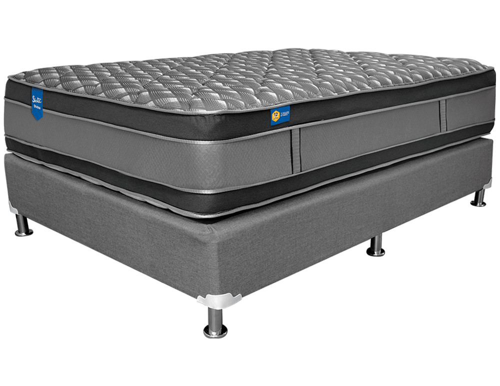 Cama matrimonial encapsulada de color gris y negro con sistema de doble pillow.