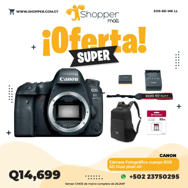 Adéntrate en el juego de fotograma completo con la cámara DSLR EOS 6D Mark II de Canon . Al hacer que las imágenes de fotograma completo de alto rendimiento sean más accesibles, la 6D Mark II hace numerosos avances respecto a su predecesora para mejorar todos los aspectos de la creación y captura de imágenes. La actualización principal se presenta en forma de un sensor CMOS de 26.2MP y el uso del procesador de imagen DIGIC 7 para brindar imágenes más nítidas y vívidas en una variedad de situaciones de disparo. Esta configuración ofrece un rango de sensibilidad nativo mejorado de ISO 100-40000, que luego puede ampliarse a ISO 50-102400, así como velocidades de disparo de hasta 6,5 fps.