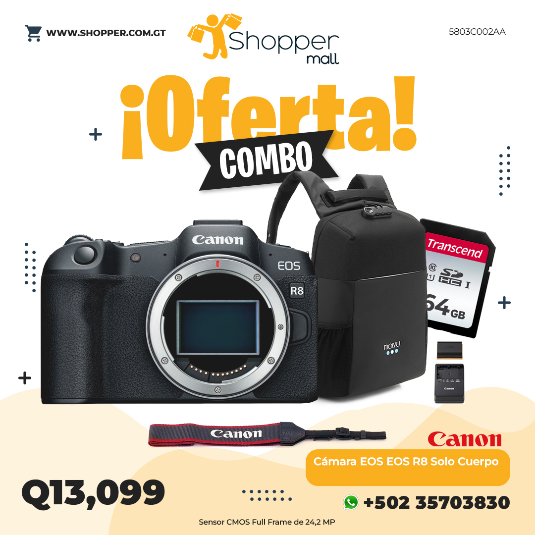 La cámara sin espejo Canon EOS R8 , un cuerpo de cámara de fotograma completo liviano y apto para viajes, ofrece potentes capacidades de fotografía y video tanto para fotógrafos como para creadores de contenido multimedia. Utilizando un sensor recientemente desarrollado que también se encuentra en la EOS R6 Mark II, la R8 presenta un sensor CMOS de 24.2MP junto con un procesador DIGIC X. En conjunto, esta combinación proporciona un rendimiento de imágenes fijas excepcional, un impresionante video 4K 60p de 10 bits y un enfoque automático rápido.