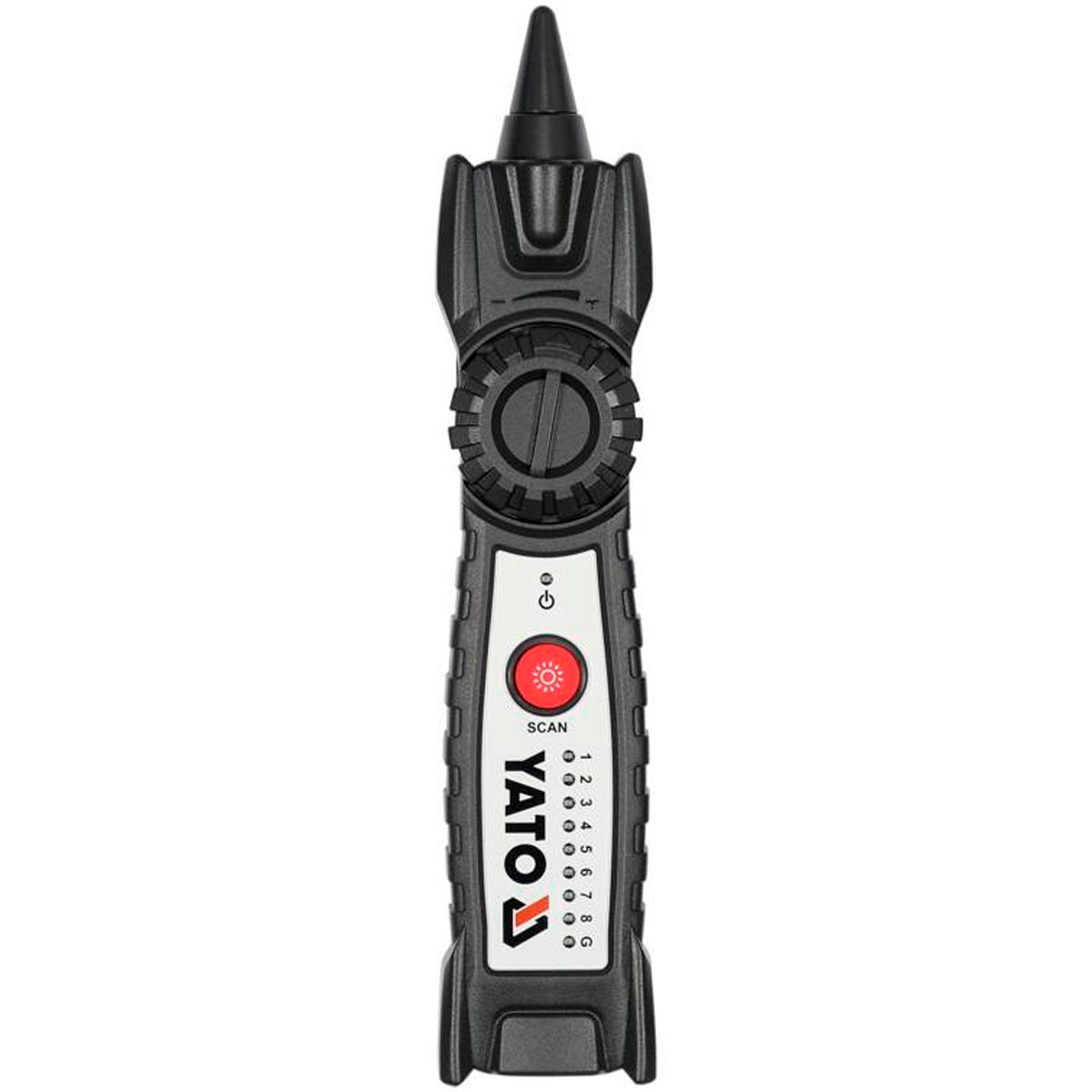 El localizador de cables YT-73137 es un dispositivo para controlar y localizar cables. Se utiliza para encaminar un cable en la pared, identificar un cable de red en la sala de servidores, localizar una rotura en la instalación eléctrica del automóvil, verificar el orden de conexiones en el cable RJ-45 y comprobar el estado de la línea telefónica.