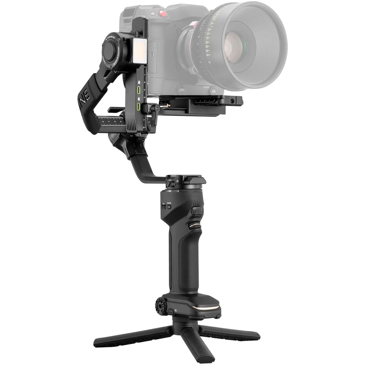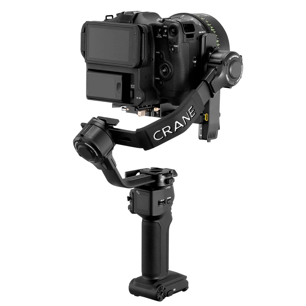 Gracias a un brazo más largo, a motores más fuertes y a una placa de liberación rápida extendida, el Crane 4 puede estabilizar de forma segura y sin esfuerzo una cámara réflex con sensor de tamaño completo y cámaras de cine compactas