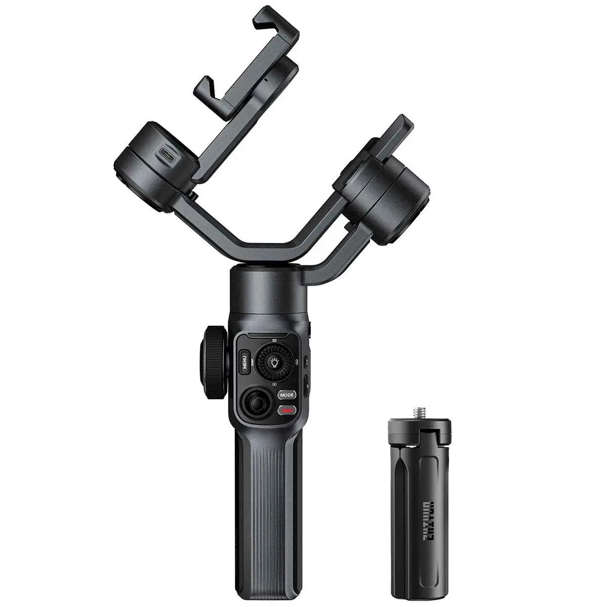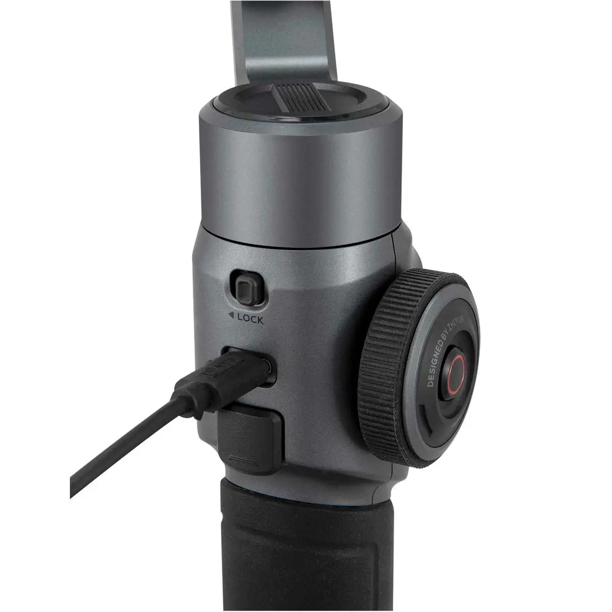 Los controles Smooth-5 rediseñados son más fáciles de usar que nunca, lo que reduce la necesidad de tocar la pantalla de tu teléfono y minimiza los empujones involuntarios durante la grabación. El Smooth-5 es compatible con casi cualquier teléfono móvil; cuenta con motores de acero magnético duraderos, una vida útil mejorada de la batería y un rango extendido de 3 ejes, y su diseño liviano y compacto ayuda en movimiento.