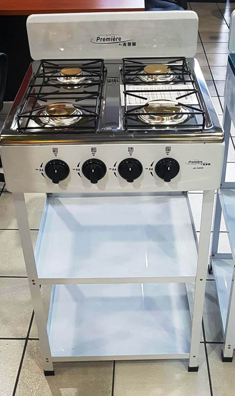 Estufa a gas de pedestal con 2 entrepanos de 4 hornillas | PREMIERE BY ABM