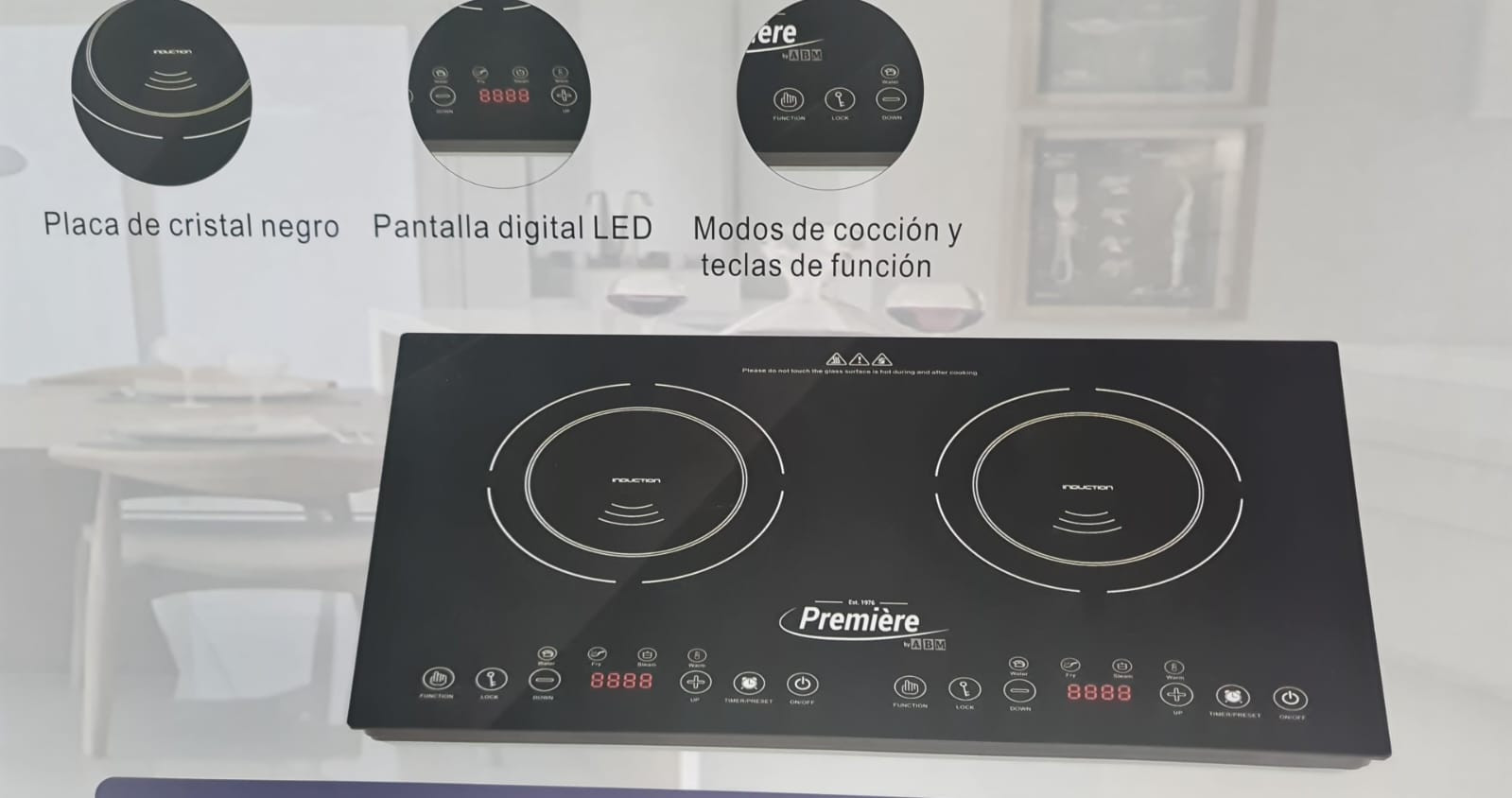 Estufa de mesa electrica de induccion 2 hornillas | PREMIERE BY ABM