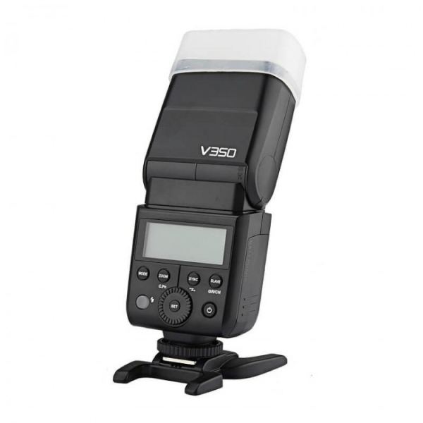 Godox V350 es una lámpara de flash pequeña y liviana con número guía 36 que es perfecta para cámaras compactas y sin espejo. Pesa solo 200 g y cuando se monta en la cámara y apunta la cabezal hacia adelante, tiene solo 95 mm de altura. A pesar de su pequeño tamaño, su cabezal de flash gira en el rango de 270 ° en el plano horizontal y 97 ° en el vertical. Esto permite mucha libertad para reflejar la luz del flash desde el techo y las paredes, independientemente de la orientación de la cámara hacia las fotos en los marcos de retrato y paisaje.