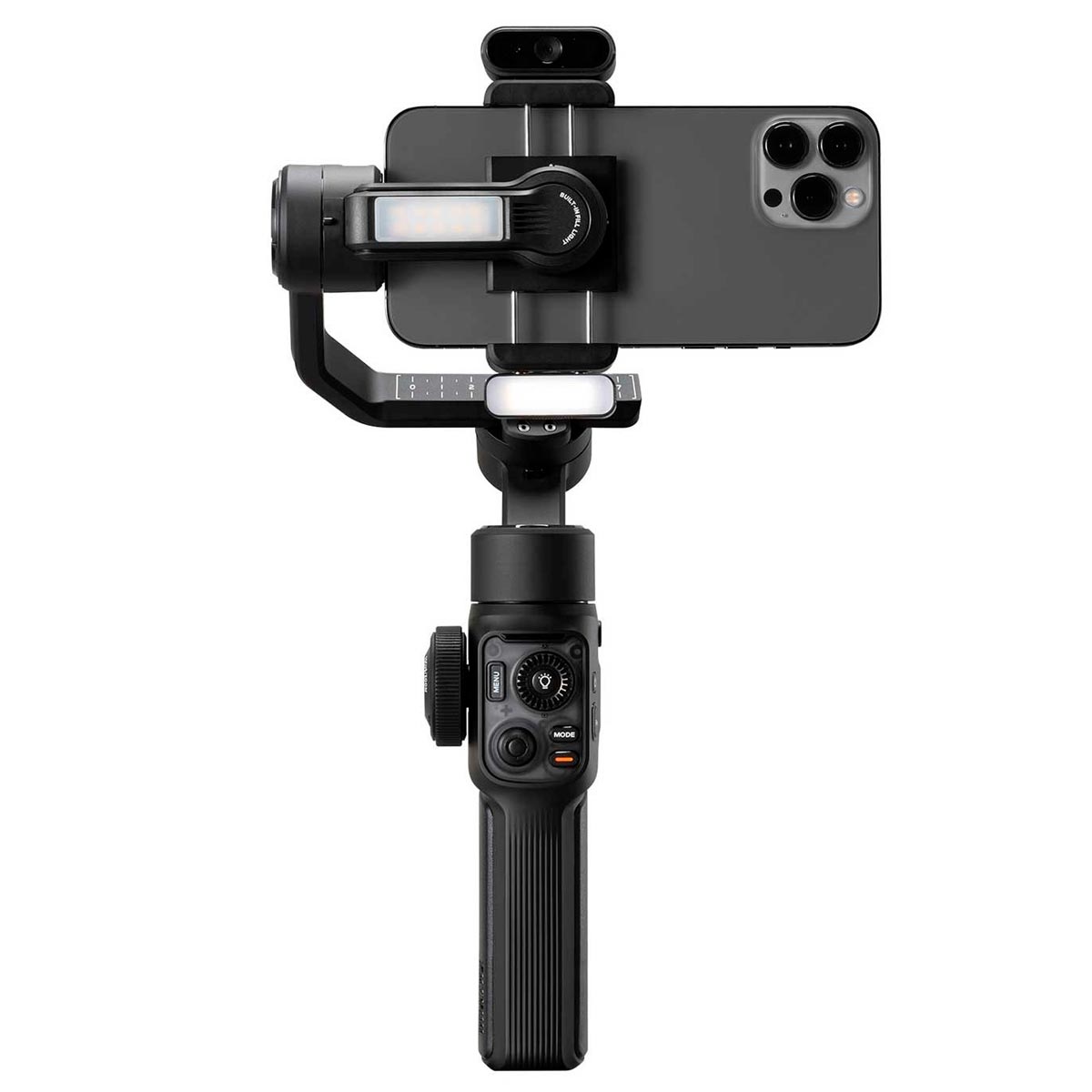 El estabilizador de referencia de Zhiyun para móviles, con una configuración que incluye el módulo de inteligencia artificial para optimizar el seguimiento del sujeto, una luz extra con cuatro filtros de color, una bolsa de transporte y una correa de mano. Compacto, robusto y con una asombrosa capacidad para estabilizar de forma fluida cualquier teléfono