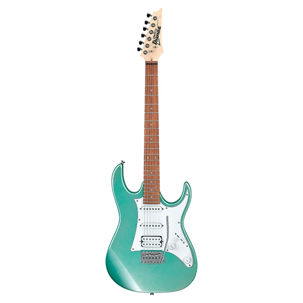 La Ibanez Gio GRX40-MGN Metallic Light Green es un modelo de entrada tanto para principiantes como músicos avanzados con características de ejecución cómodas y un sonido flexible. El modelo ofrede el elegante diseño RG con c utaways y un cuerpo contorneado , un cuerpo de álamo y un mástil de arce atornillado con perfil » GRX » plano . La configuración de pastilla HSS con una potente pastilla humbucker en posición del puente R Infinity y dos pastillas single coil RS Infinity promete una amplia gama de sonidos para casi cualquier estilo de música. El hardware fiable en forma de un puente Ibanez T106 Tremolo y el clavijero prensado de Ibanez completan el modelo.
