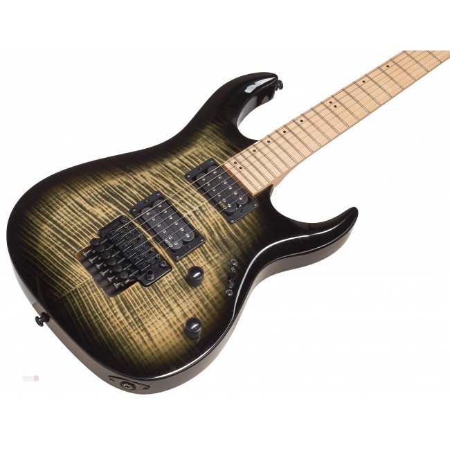 El nuevo X300 cuenta con materiales y componentes premium con la reconocida calidad, mano de obra y valor de Cort. Flame Maple de primera calidad se combina con el cuerpo de American Basswood y el mástil y diapasón de arce para un sonido de rango completo que es equilibrado, profundo y cortante simultáneamente. El trémolo Floyd Rose Special permite un bombardeo en picado extremo y chillidos armónicos a la vez que proporciona una estabilidad de afinación perfecta y las pastillas EMG Retroactive Hot 70 ofrecen una gran potencia con un carácter clásico de sonido cálido.