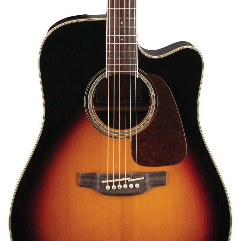 Características excelentes incluyen el cuerpo de arce, el cuello y la unión del cabezal; tuerca de hueso sintético y montura de puente partido; gorro de laurel; roseta de abulón; incrustaciones de puntos de arce; afinadores de oro fundido a presión con botones ámbar; y un hermoso acabado brillante. Disponible en natural y Sunburst.