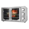 Nunca antes un horno de mesa ofrecía tanta facilidad para preparar pollos enteros, asados o recetas para una familia grande. Su doble puerta permite entrar y sacar las preparaciones sin ninguna dificultad. Y su asador para rostizar es ideal para preparar carnes y aves jugosas.