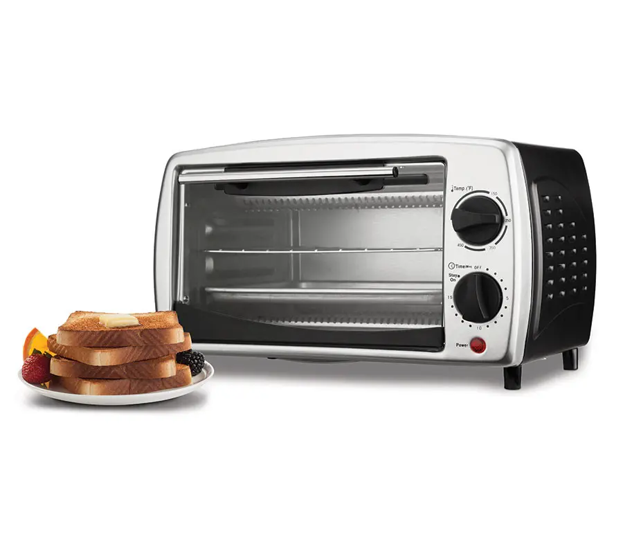 Horno tostador de 4 rebanadas de acero inoxidable Brentwood TS-345B de 800w puede tostar, asar y hornear una gran variedad de alimentos. Rangos de temperatura ajustable de 50 a 450 grados.