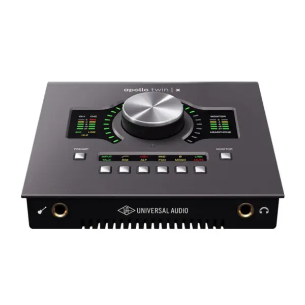 Preparada para ser el centro de un estudio doméstico o equipo móvil, la interfaz de audio 10×6 Thunderbolt 3 de escritorio Universal Audio Apollo Twin X QUAD combina el sonido, la sensación y el flujo de la grabación de estudio analógico con el potente procesamiento UAD en tiempo real QUAD Core y un sonido abundante paquete de 14 complementos de UAD estelares.