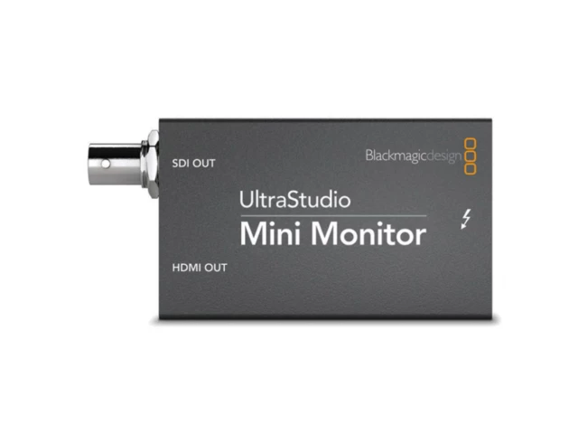 El UltraStudio monitor es una interface de monitor para enviar la señal del puerto Thunderbolt a SD/HD SDI o HDMI. Con este accesorio se puede utilizar el computador con salida Thunderbolt y conectarlo a monitores con entradas SDI o HDMI. Es compatible con Apple Final Cut Pro internal effects, Adobe Premiere Pro Mercury Playback Engine effects y
