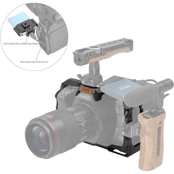 | Soporte SSD T5 incorporadoEl soporte de SSD T5 integrado ocupa muy poco espacio y mejora la compacidad y se adapta a la abrazadera de cable SSD y USB-C para garantizar la estabilidad y la transmisión de datos suave mientras disparas. | Sin botones de bloqueLa jaula se adapta perfectamente al cuerpo sin bloquear sus agujeros, ranuras, rejillas de ventilación o puerta de la batería. | Zapato fríoCuenta con una zapata fría para fijar Arri Locating Handle 2165 y para Samsung T5 SSD Mount 3272. |