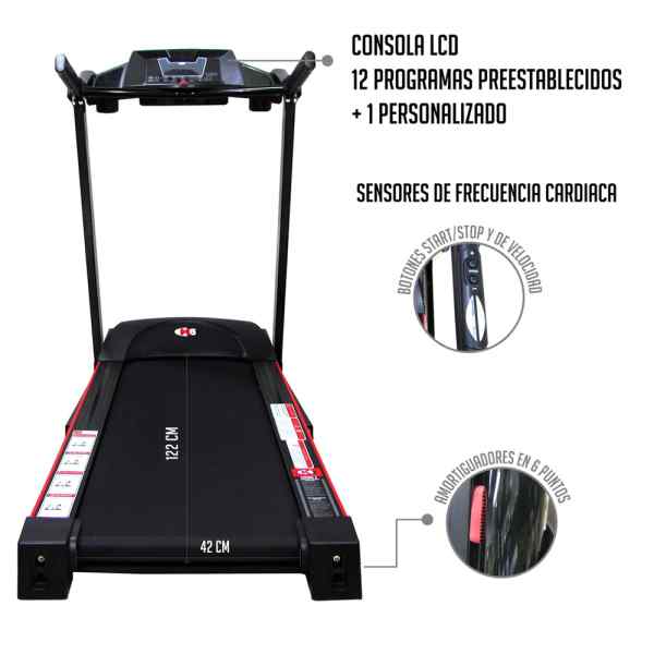 - Cuenta con monitor digital, medidor de frecuencia cardiaca incorporado e inclinación manual para realizar sprints con mayores niveles de exigencia.
