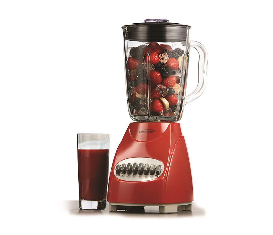 Licuadora de 12 Velocidades Roja Vaso de Vidrio | BRENTWOOD