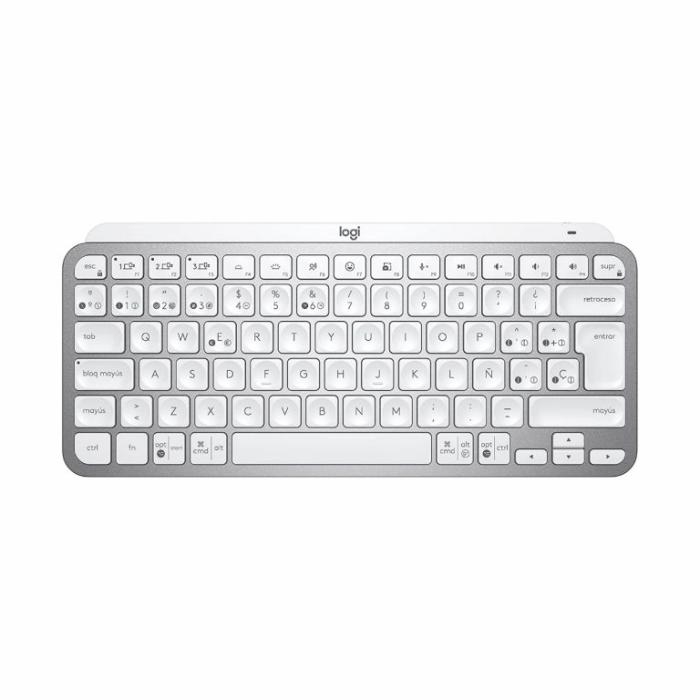 Logitech MX Keys Mini – Teclado – Inalámbrico – Español – USB / Bluetooth 5.0 / Bluetooth – Ergonomic Design – Gris pálido