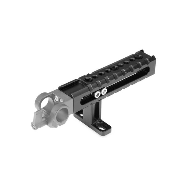 El mango superior de la cámara estabilizadora universal de SmallRig cuenta con 3″ de ajuste hacia adelante/atrás para ayudar a estabilizar el equipo de la cámara. Las características adicionales incluyen dos adaptadores de zapata fría, múltiples roscas de 1/4″-20 y 3/8″-16, y dos ARRI Soportes de accesorios antitorsión de estilo.