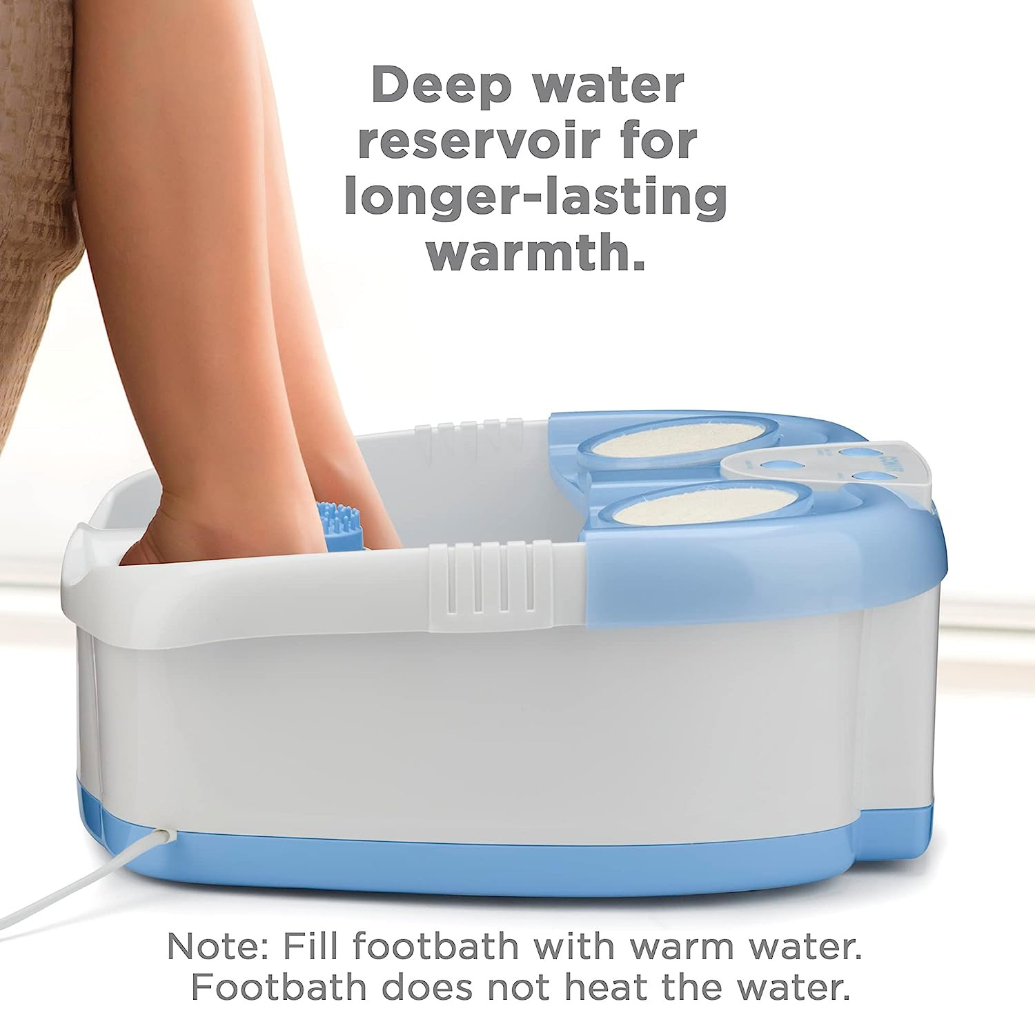 - Alivio del estres: este bano de pies cuenta con 3 accesorios: cepillo para fregar, piedra pomez y un masajeador preciso. Anaden un toque de lujo para un relajante tratamiento de pedicura en casa y spa.