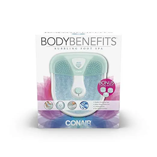 Masajeador de pies relajante bano de pies con calor, burbujas y 3 accesorios: un touchpad para controlar las burbujas y calor. 2 tiras de burbujas. 3 accesorios de pedicura con un accesorio de almacenamiento.