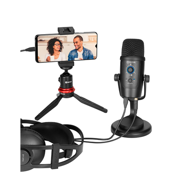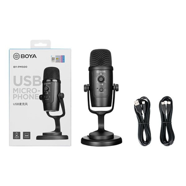 El micrófono de condensador USB BOYA BY-PM500 presenta patrones de captación cardioide y omnidireccional con frecuencias de muestreo de alta resolución de 24 bits/48 kHz.