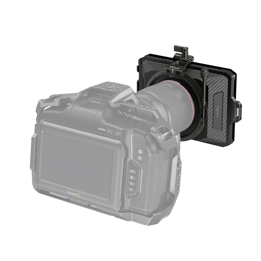SmallRig Mini Caja Mate Lite 3575 está diseñado para DSLR y cámaras sin espejo para evitar que la luz solar u otra luz cause reflejos y destellos y para controlar las imágenes en la pantalla. Su conector de abrazadera funciona con anillos adaptadores de varios tamaños (Φ52-95 mm; Φ55-95 mm; Φ58-95 mm; Φ62-95 mm; Φ67-95 mm; Φ72-95 mm; Φ77-95 mm; Φ82-95 mm; Φ86-95 mm) o conectados directamente a lente de Φ95 mm; su anillo adaptador se adapta a filtros CPL, ND y otros filtros circulares de hasta Φ92,5 mm. Usando la bandeja de filtro (ID: 3319/3320) se pueden instalar rápidamente filtros enchufables de 4 x 5,65″/4 x 4” de 4 mm de espesor. Bandeja de filtro fácil de guardar (ID: 3319/3320), que se puede se monta rápidamente en la caja mate a través de una abrazadera NATO, admite múltiples filtros enchufables de 4 x 5,65″/4 x 4” de 4 mm de espesor al mismo tiempo, protege los filtros contra caídas accidentales y evita rayones y huellas dactilares al reemplazar el complemento filtros.