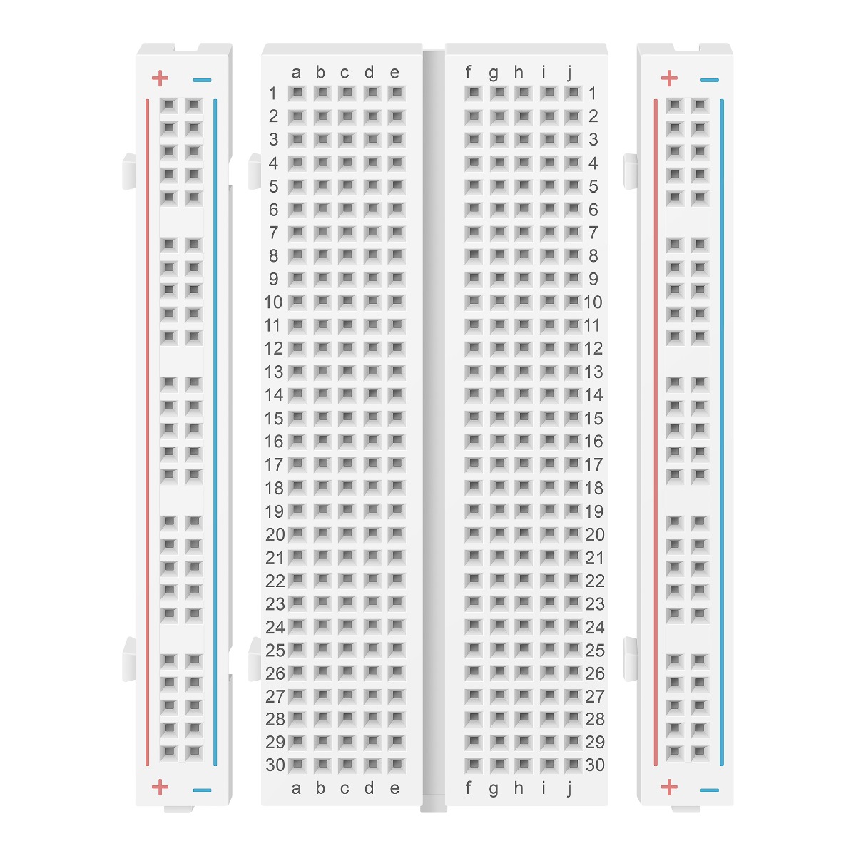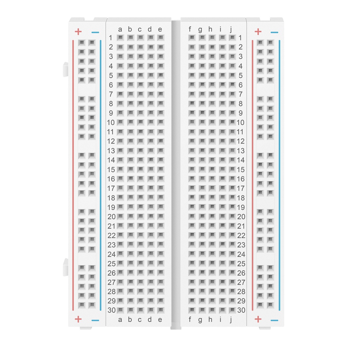 Ensamble: Tiene pestañas en los costados que permiten ensamblar, por presión, otros protoboards.