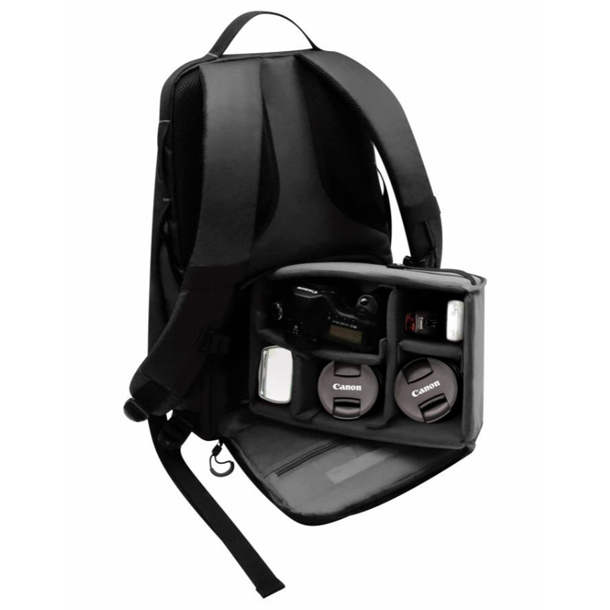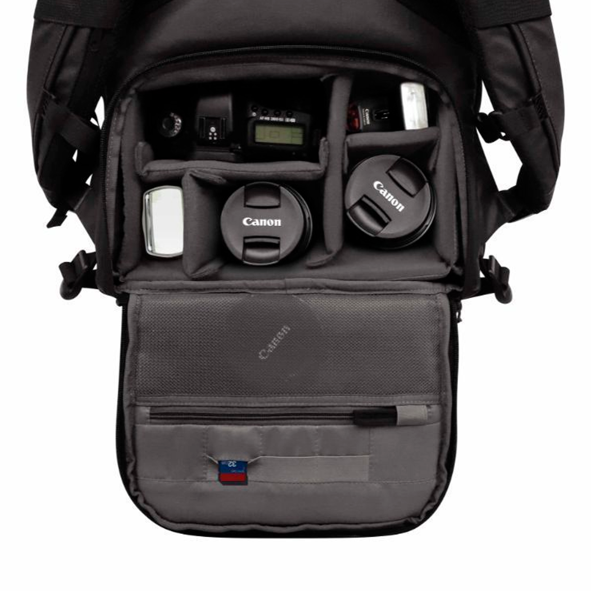 La Mochila Canon CCB-BP5-BK BP se pueden ajustar según sea necesario, lo que facilita la separación de la cámara y los accesorios. La mochila tiene compartimentos claramente definidos, lo que le permite organizar el equipo de la cámara y otros elementos por separado. También tiene un diseño con cremallera en la parte posterior, lo que permite un acceso directo al equipo de la cámara con facilidad.