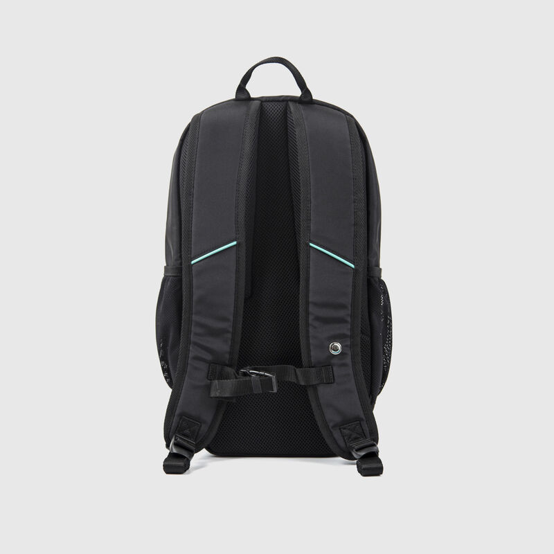 La mochila presenta una sutil marca de Mercedes-AMG Petronas Motorsport en el frontal con un forro verde Petronas en contraste y detalles sutiles. Las correas de hombro y la parte posterior acolchadas para mayor comodidad la hacen perfecta para llevarla y usarla a diario.
