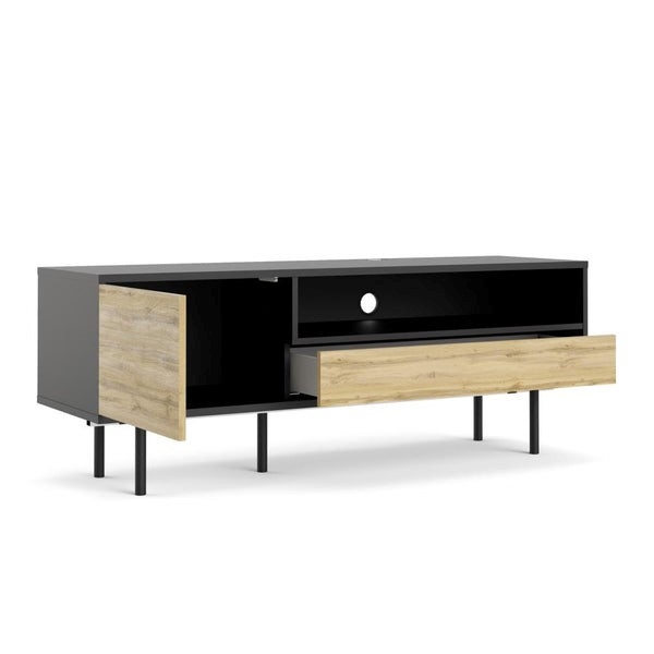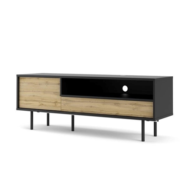 Tan atractivo como funcional, este modulo de TV es una adicion excepcional al area de entretenimiento. Contiene las areas suficientes para organizar los aparatos receptores y reproductores, con el espacio adecuado para trasladar el cableado hacia atras. La gaveta larga es muy practicas para almacenar discos, juegos y otros elementos de entretenimiento.