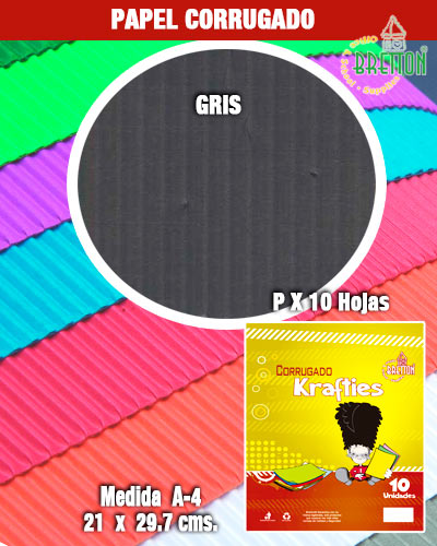 Papel Corrugado En Hoja Bretton E-161-8037 A-4 21 X 29.7 Cm., Gris X 10