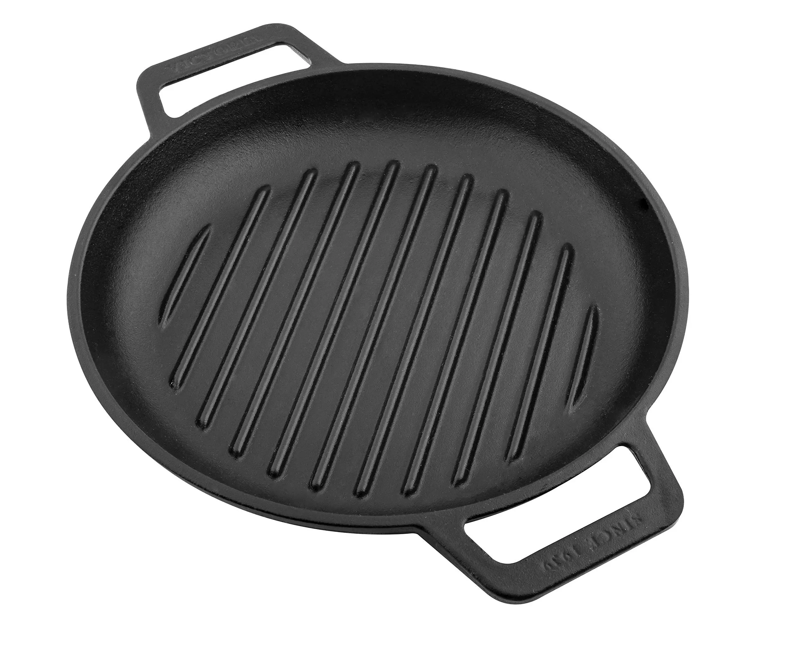Parrilla sarten de hierro fundido, asas de doble bucle listo para sazonar con aceite de linaza 100% certificado Kosher sin OMG.