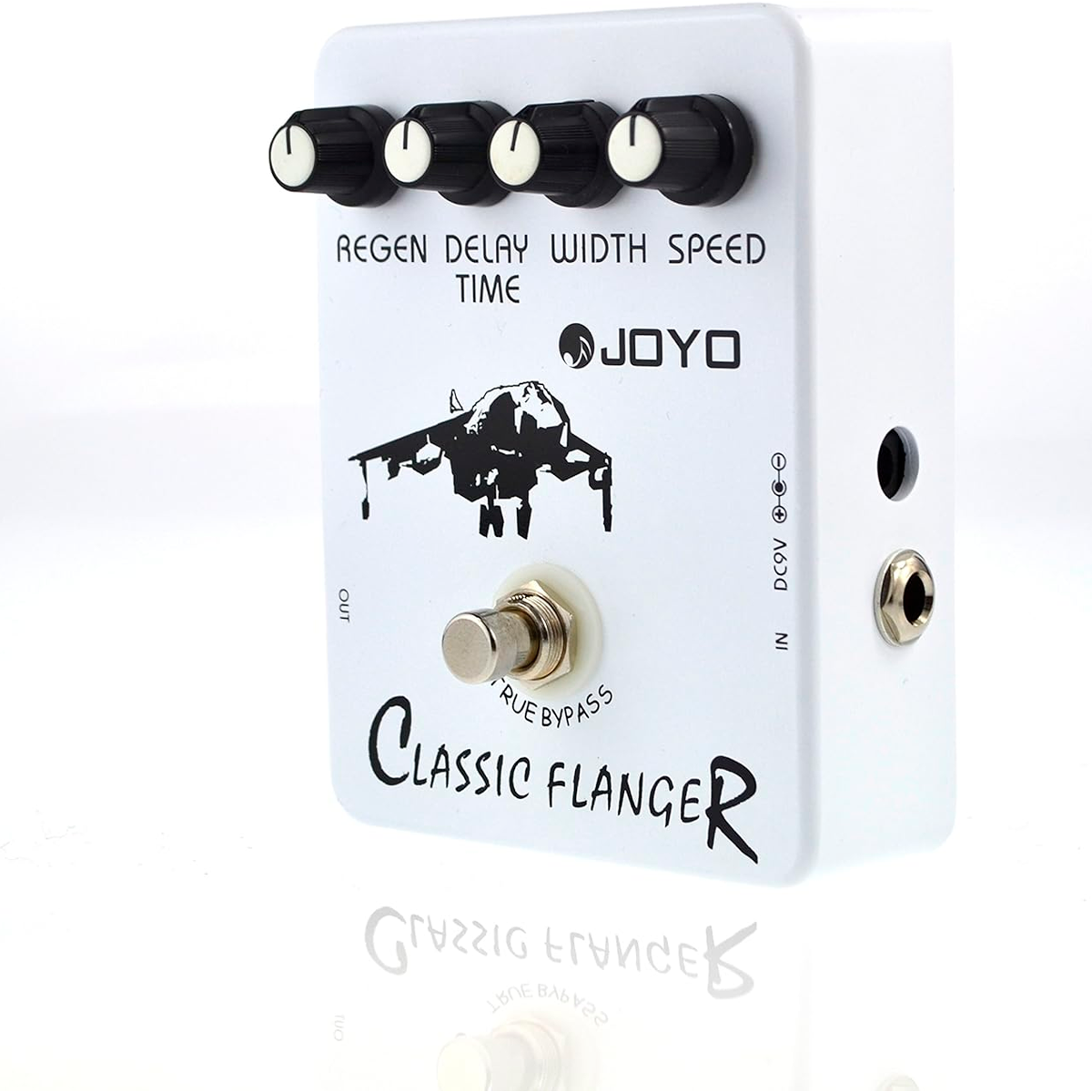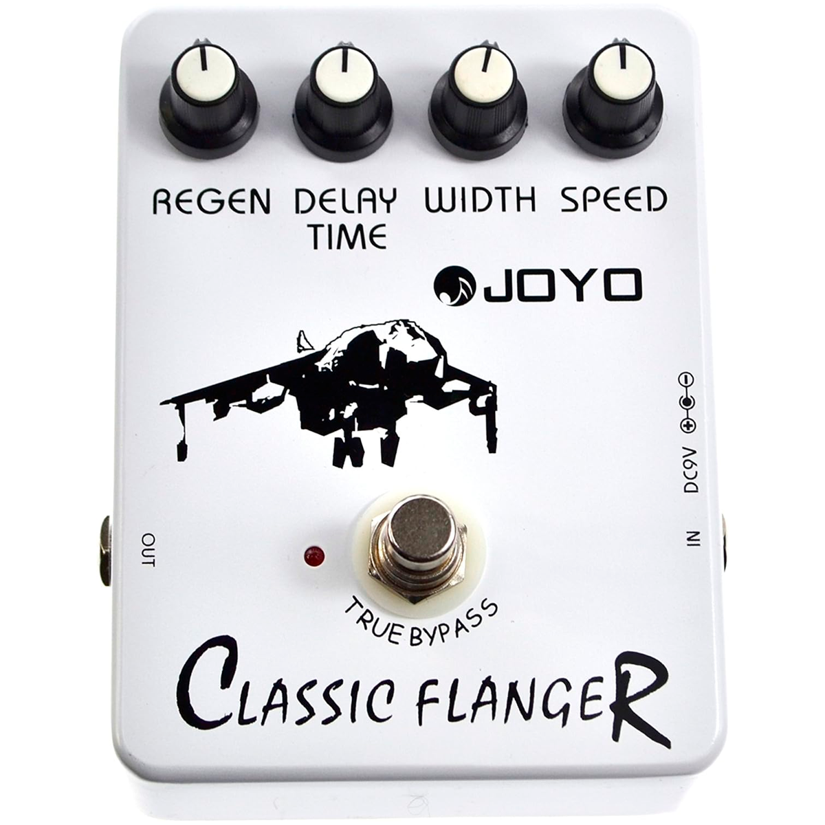 Con cableado de derivación verdadero, perillas para controlar la regeneración (cuánta retroalimentación arroja el pedal a la mezcla), tiempo de retraso (lo suficientemente obvio, la velocidad del remolino), ancho (también juega significativamente con la modulación, afectando básicamente qué tan lejos llega el flanger lejos de no modulado o limpio) y finalmente velocidad (también afecta a la agitación y, en general, controla el bamboleo). Este es un pedal asequible pero altamente efectivo, y como tal permite a cualquier guitarrista, principiante intermedio o experto, sumergirse (profundo) y comenzar a experimentar con el espacio superior que es el sonido.