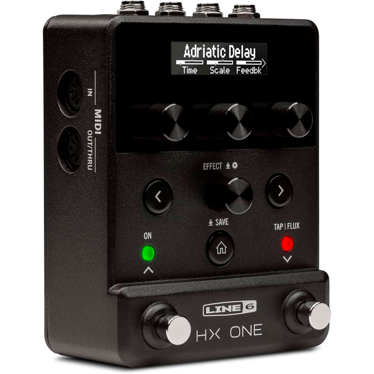 El HX One cuenta con más de 250 emulaciones de efectos de primer nivel del ecosistema HX, incluyendo una amplia gama de pedales clásicos, clásicos de estudio y originales de Line 6. Diseñado para la simplicidad y facilidad de uso, el bloque de efectos único y las tres perillas del HX One le otorgan un flujo de trabajo altamente intuitivo que los guitarristas de Sweetwater encuentran mucho más similar a un pedal de efectos tradicional de tres perillas que a un multiefectos típico. Además, la distintiva función “Flux” del HX One permite automatizar los cambios de parámetros con solo tocar un interruptor.