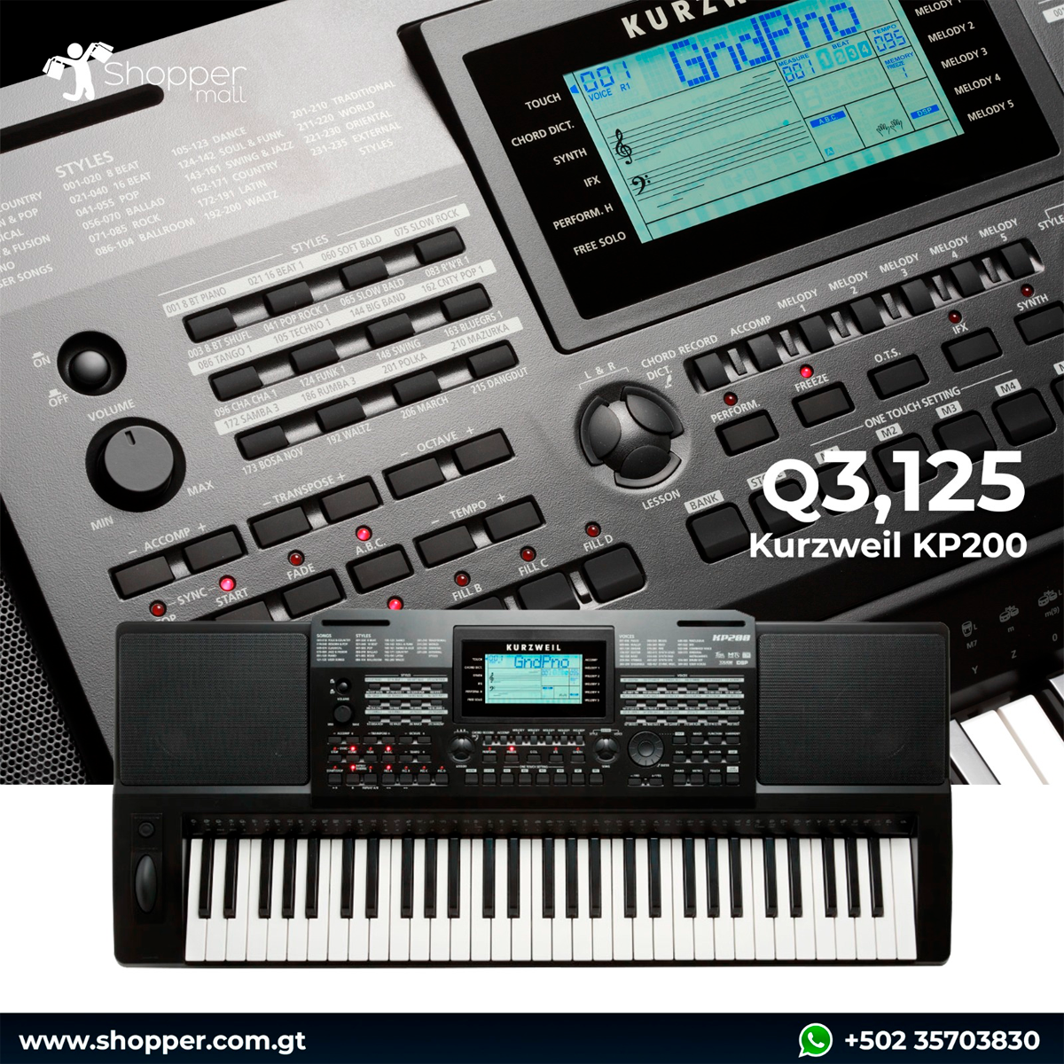 • El Kurzweil KP200 es un potente organizador portátil con un teclado de acción sintética de 61 notas con controladores de pitch bend y modulación.