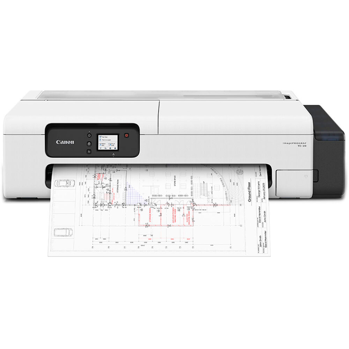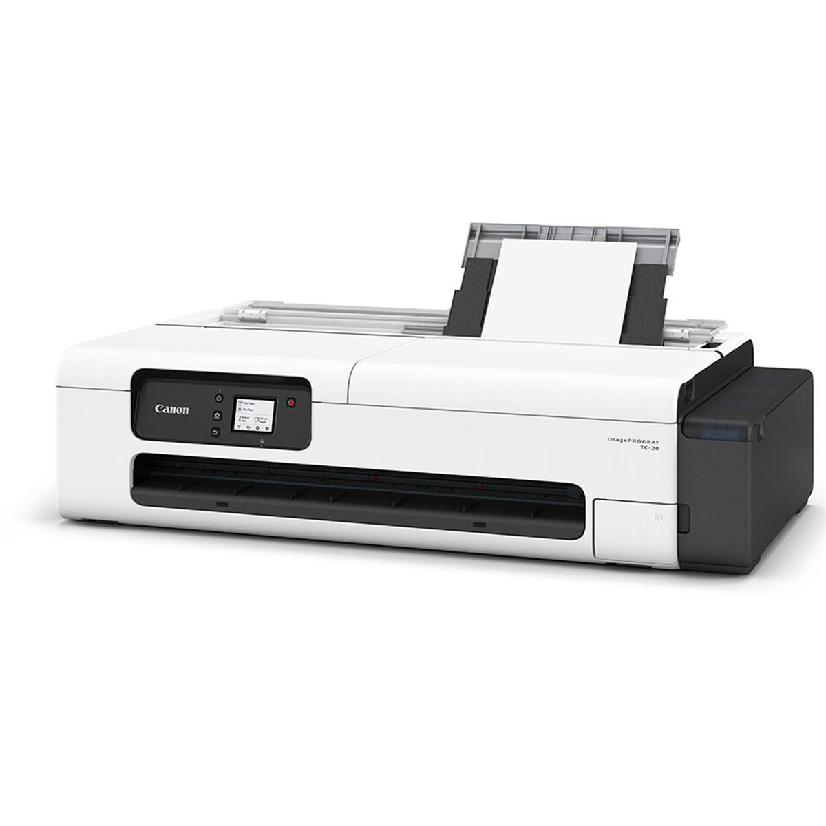 Diseñada para espacios reducidos, la Canon imagePROGRAF TC-20 es una impresora compacta de escritorio de 24″ con alimentador automático de hojas y alimentación por bobina. Incluye cuatro botellas de tinta pigmentada y es ideal para imprimir folletos y pósteres grandes y coloridos para anuncios, señalización, anuncios, renderizados CAD y documentos técnicos. Ofrece una resolución de impresión de 2400 x 1200 ppp y utiliza la tecnología FINE (Ingeniería de Boquillas de Inyección de Tinta para Fotolitografía) de precisión para obtener impresiones nítidas. Para crear pósteres y folletos, dispone de acceso gratuito a la aplicación web PosterArtist, basada en plantillas. Para la conectividad, la TC-20 ofrece interfaces Wi-Fi, USB y Ethernet integradas. El Wi-Fi le permite imprimir desde prácticamente cualquier lugar de la oficina.