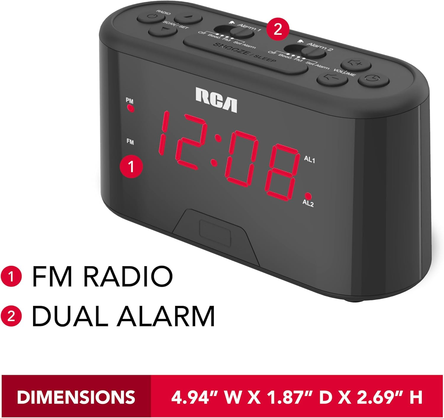 Reloj despertador con alarma dual | RCA