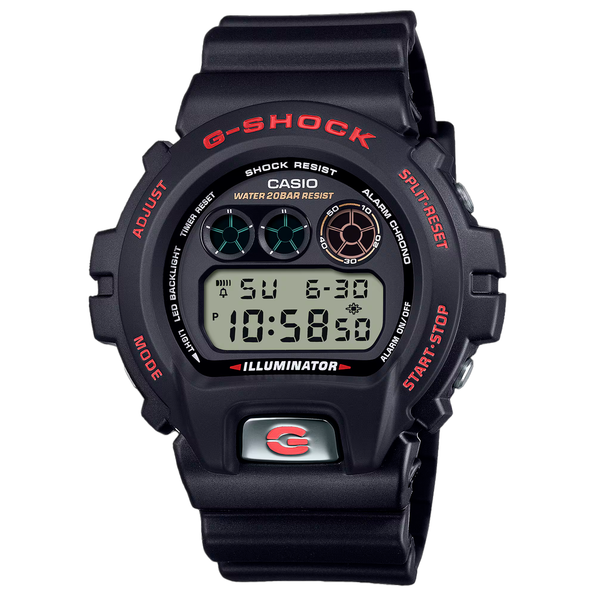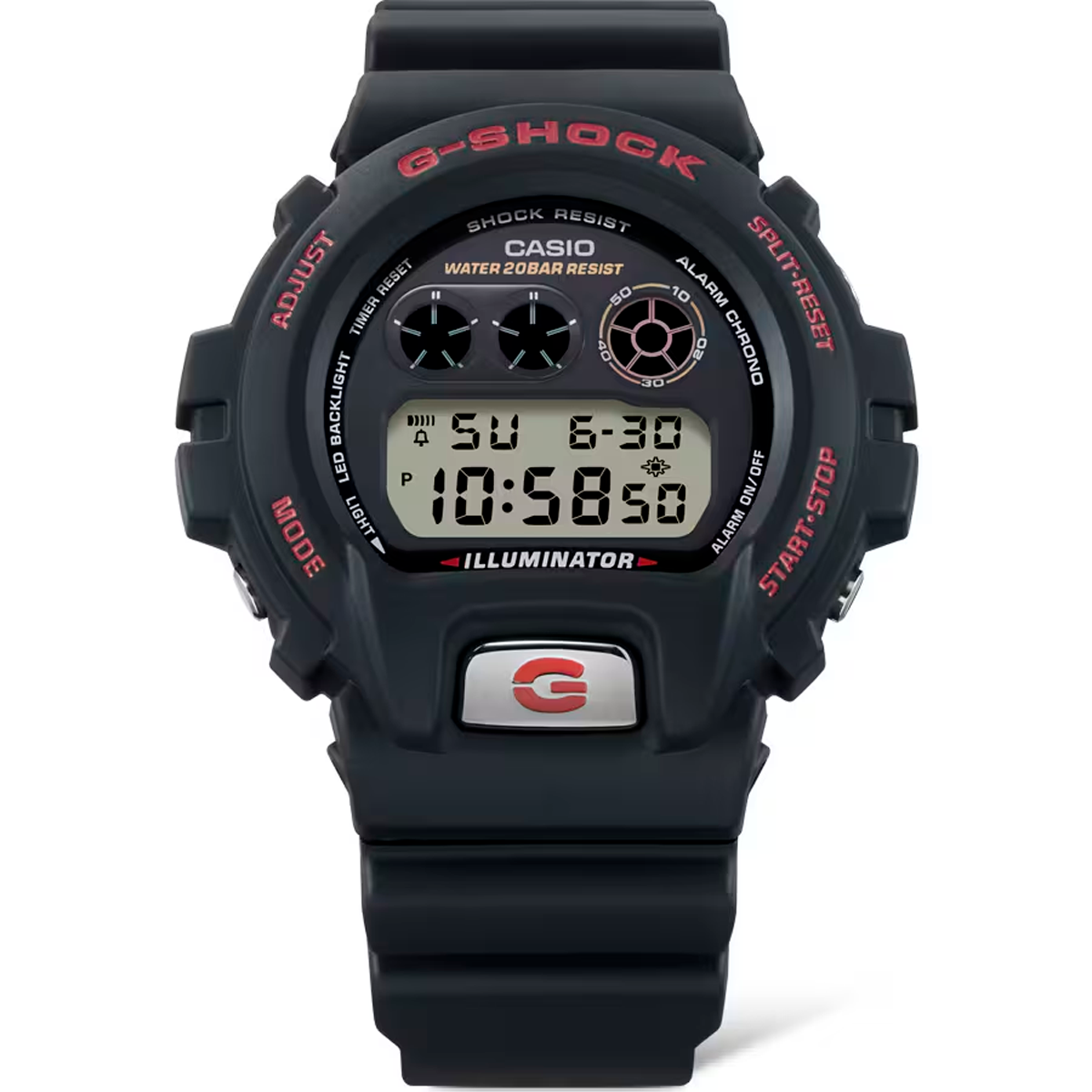 Seguro, resistente y listo para todo: exprese su estilo atrevido con la línea del 30.º aniversario de la popular línea 6900, uno de los estilos más emblemáticos del G-SHOCK. El DW-6900TR, con el negro del DW-6900H, el primer modelo de variación de color de la línea 6900, rinde homenaje a la historia de la diversa evolución de la línea que se remonta a 1995. Pusimos la atención en el icónico botón frontal del 6900, ahora en metal con la letra “G” grabada en la superficie con acabado de espejo, para ofrecer una potente sensación de presencia, justo en el centro de la clásica forma redonda. Presione el botón de luz para activar la retroiluminación y aparecerán las palabras “SINCE 1995” en la pantalla LCD. El logotipo “SHOCK RESIST” grabado en la parte posterior de la carcasa está rodeado de 30 estrellas que conmemoran los 30 años de la línea 6900. Los componentes clave utilizados en el marco y la correa, entre otros, están fabricados con resina de origen biológico, un material que se espera que ayude a reducir el impacto ambiental.