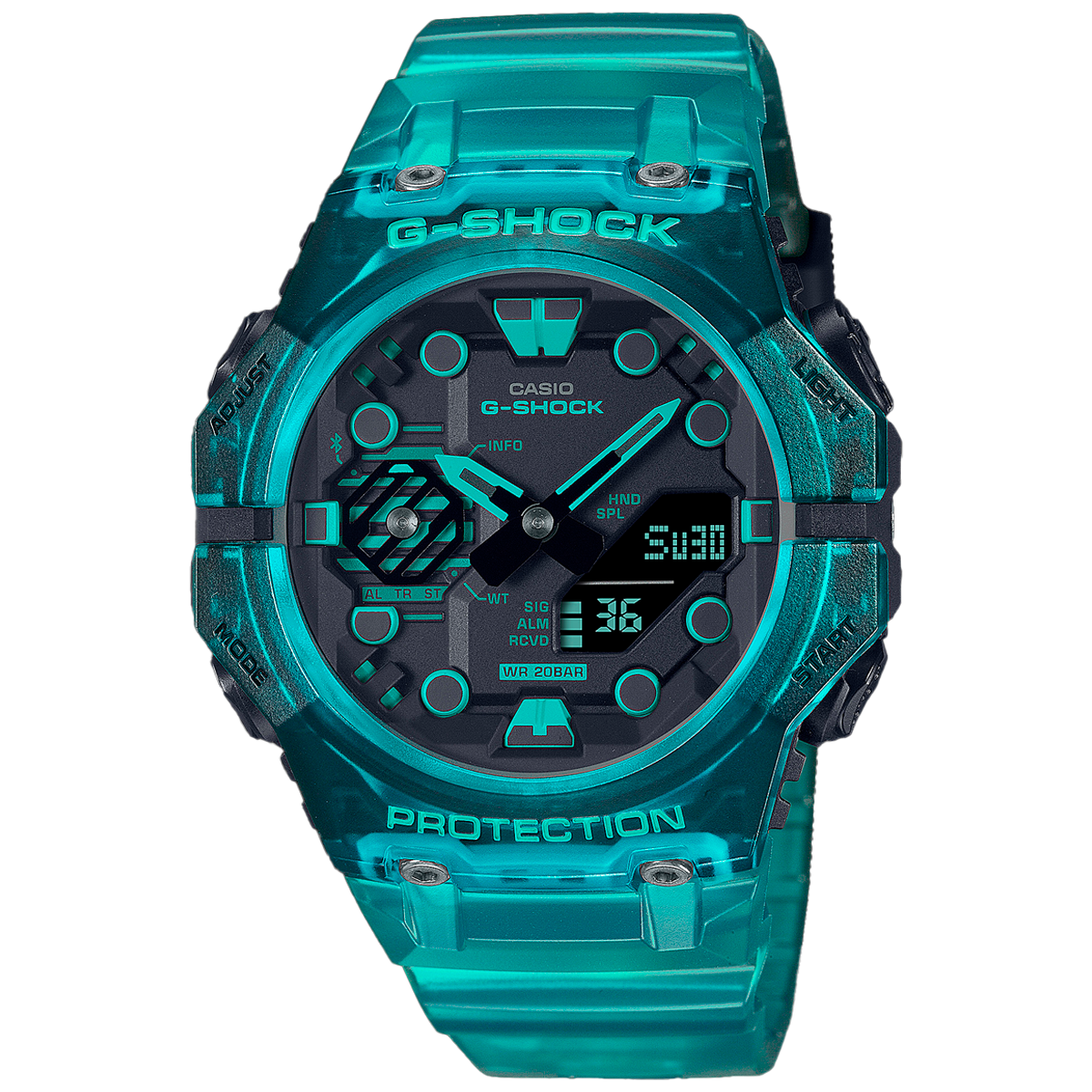 Presentamos la línea GA-B001 de relojes G-SHOCK, con un nuevo diseño resistente y funcionalidad de vinculación con teléfonos inteligentes. Los esquemas de colores llamativos lo llevan de las elegantes calles urbanas a los grandes espacios al aire libre y a cualquier otro lugar. Estos relojes no solo ofrecen estilo, sino también funcionalidad completa. Sincronícelo con su teléfono inteligente a través de Bluetooth® e ingrese a la aplicación exclusiva para acceder a las funciones que necesita. La línea GA-B001 cuenta con una construcción innovadora, con dos componentes separados de marco superior e inferior que se conectan en las posiciones de las 9 y las 3. Esta ingeniosidad se complementa con una atención meticulosa a los detalles, con marcas de índice y una pantalla LCD de forma única, diseñada como nunca antes en un G-SHOCK. Elíjalo en negro, en color translúcido degradado de azul turquesa o negro o, la última adición, en rojo.