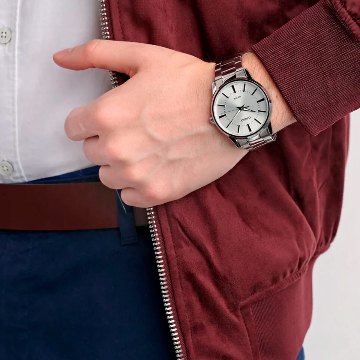 RELOJ METAL FASHION WR50M, CASIO Duración aproximada de la batería: 3 años, Material de la caja y el bisel Ion plateado, Banda de acero inoxidable, Cierre de triple pliegue