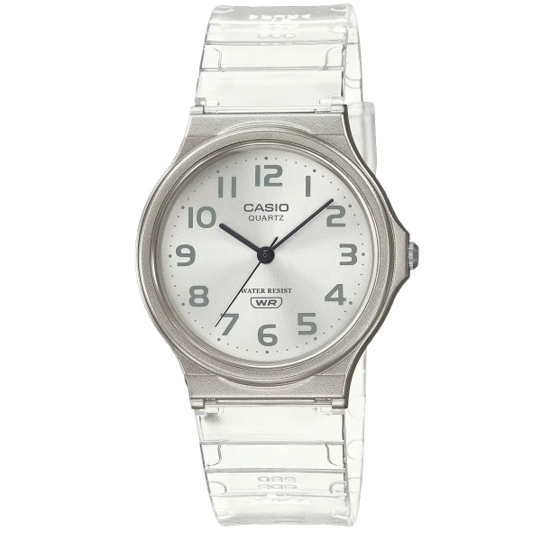 ¡El exitoso MQ-24 está de vuelta en diseños coloridos translúcidos! Estos relojes cuentan con una carcasa metálica, un dial con acabado de rayos de sol y una correa que se unen en una armoniosa combinación de colores monocromáticos. Un reloj con un diseño sencillo con manecillas básicas de hora, minutos y segundos, resistente al agua para uso diario y con un ajuste ligero y cómodo.