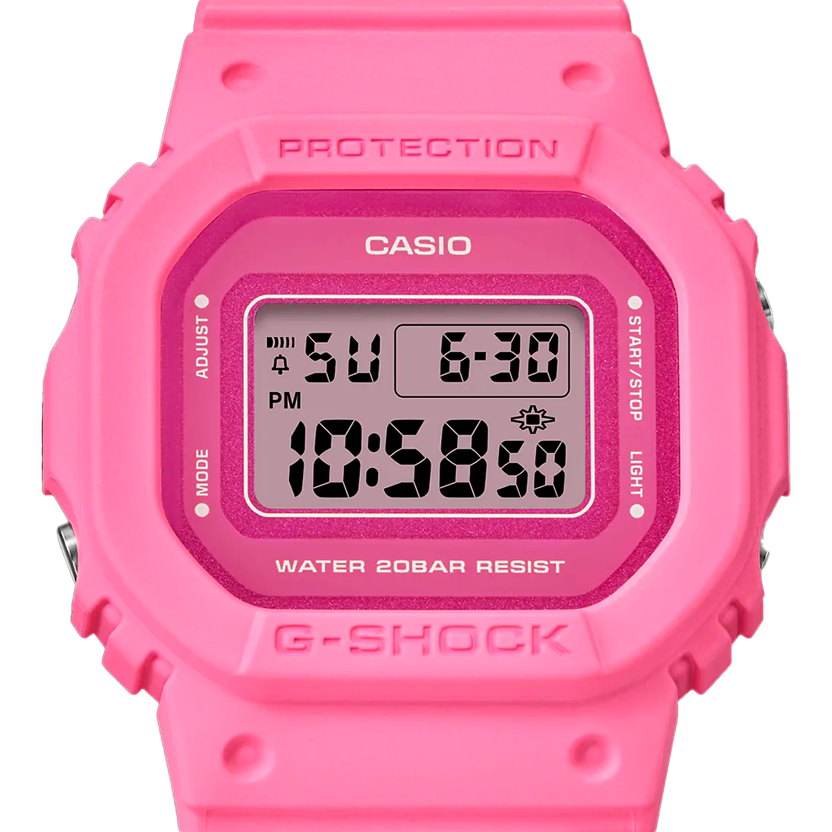 Empodérate con el poder del rosa. Esta potente línea rosa presenta diseños elegantes, monocromáticos y sutilmente matizados que destilan individualidad. Aquí no encontrarás rosas dulces y pegajosos, solo fuerza de alto impacto. Con un color rosa brillante y un acabado mate que le da un toque suave, el bisel y la correa de estilo sencillo son lo suficientemente versátiles como para combinar con cualquier atuendo. El rosa intenso de la esfera aporta un toque de color que unifica el diseño, creando un reloj que proyecta concentración y fuerza. Los componentes principales de la caja, el bisel, la correa y otros detalles están fabricados con resina de base biológica, un material producido a partir de recursos orgánicos renovables, lo que contribuye a reducir el impacto medioambiental.