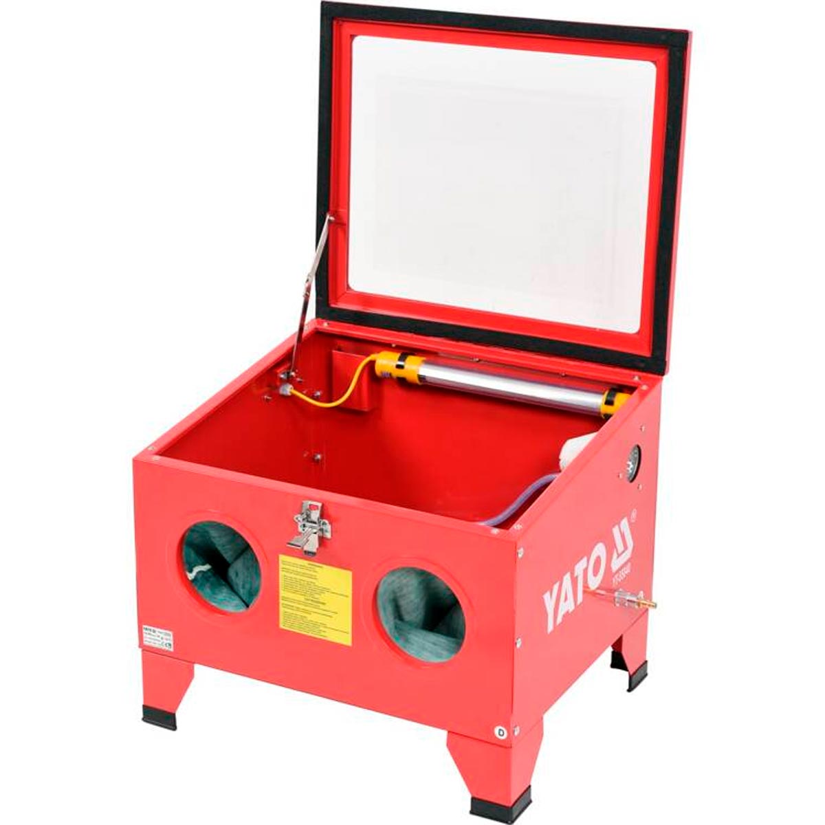 Chorro de arena neumático de cabina para una limpieza rápida y cómoda de óxido, pintura y suciedad mediante abrasivo que circula en circuito cerrado. Indispensable en talleres de automoción y plantas industriales.