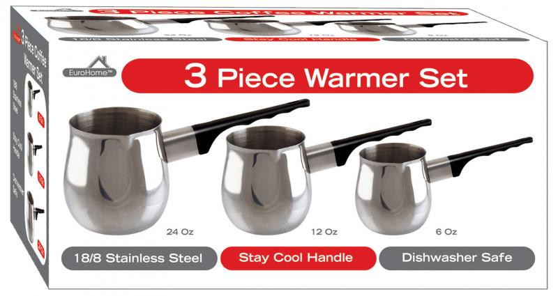 Juego de calentador de cafe, leche y mucho mas de 3 piezas de acero inoxidable.