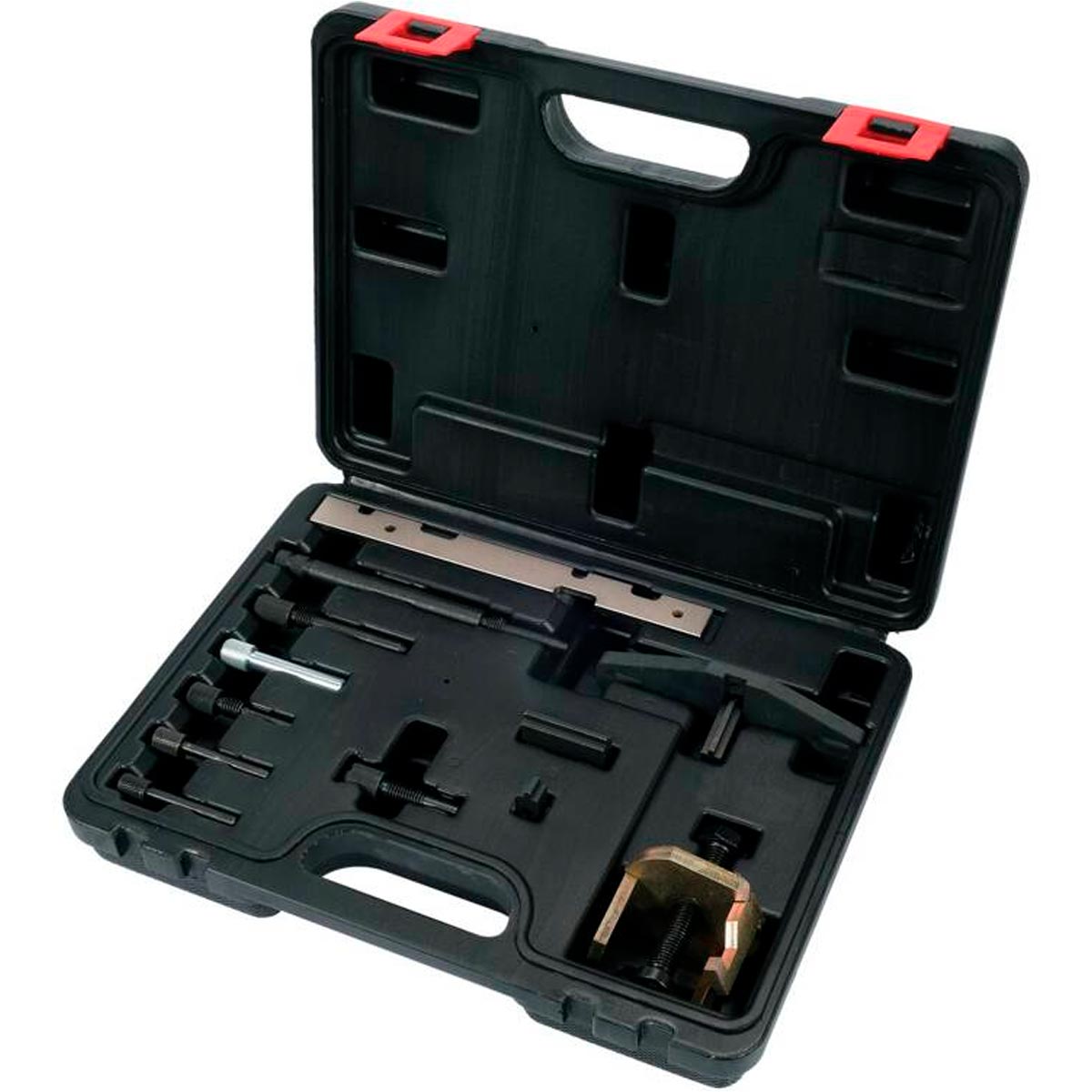 Juego de bloqueo de sincronización YT-06021 para automóviles Ford, Mazda y Volvo con motores de gasolina y diésel. El kit incluye bloqueo del árbol de levas, bloqueo de la bomba de inyección, bloqueo del volante, extractor de rueda dentada y pernos de bloqueo. Diseñado para motores: Diésel 1.8 D/TD, 1.8 Di, 1.8 TDCi, 2.5 Di/TD/TDCi/TURBO; gasolina: 1.25 16V, 1.4 16V, 1.6 16V, 1.8 16V, 2.0 16V, 2.3 16V.