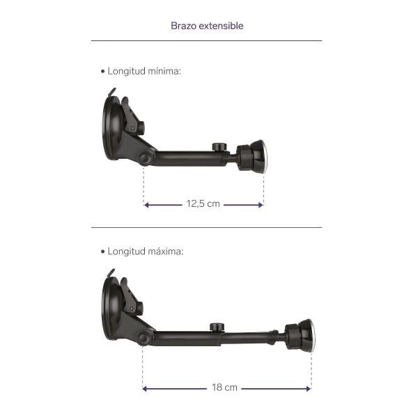 Este soporte con sistema de sujeción magnética te permitirá poner y quitar tu celular con la máxima comodidad, ¡utilizando una sola mano, de forma rápida, y sin complicaciones! Sólo tienes que colocar una placa de metal (incluida) entre la funda y la parte trasera de tu celular para que se adhiera al imán y mantenga el dispositivo en la posición que desees. Gracias a su brazo extensible y ajustable, es ideal para colocarlo en automóviles y camionetas que tengan parabrisas muy inclinados o tableros muy amplios, así que ofrece la posibilidad de tener el celular cerca y a la mano para revisar el GPS o controlar el reproductor de música. Además, tiene ventosa de alta succión con material adherente para asegurar la máxima fijación al parabrisas, aun en caminos con vibraciones. Está fabricado con plástico ABS resistente al impacto.