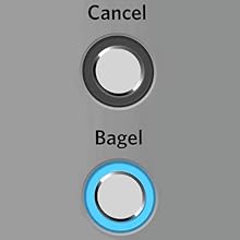 Botones Bagel y CancelarBagel Button reduce la potencia de un lado de los elementos calefactores en un 50%. Esto anula suavemente la parte inferior de un bagel mientras tosta el lado que está cortado. |