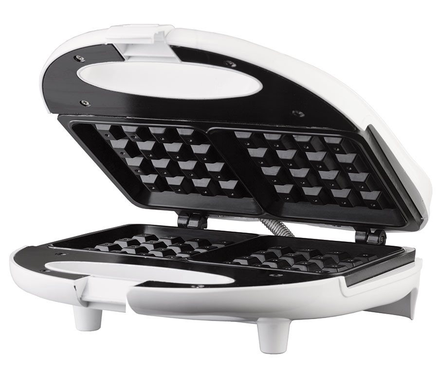 Waflera doble antiadherente 750 vatios cocina dos gofres perfectos en 6-10 minutos. Los waffles se deslizan directamente de las placas antiadherentes faciles de limpiar. Practicas luces indicadoras de energia.